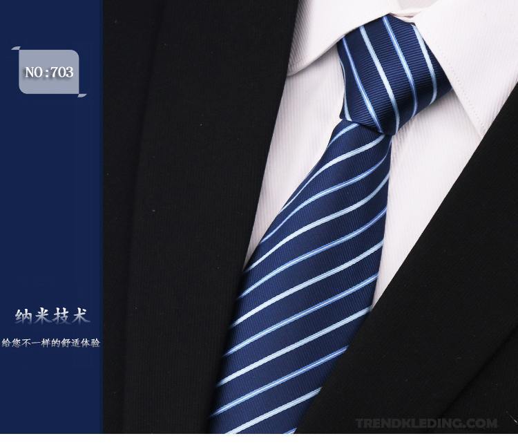 Stropdas Heren Rits 7 Cm Business Geklede Smal Lounger Donkerblauwe Blauw Zwart