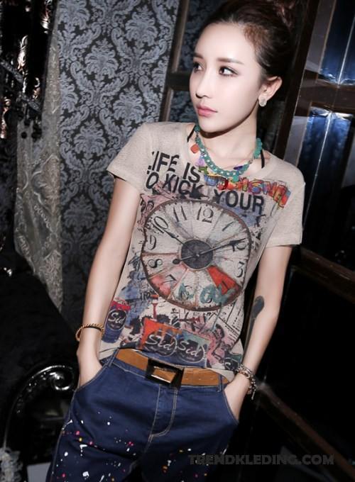 T-shirt Dames Onderhemd Mode Slim Fit Korte Mouw Jasje Katoen Wit Grijs Licht