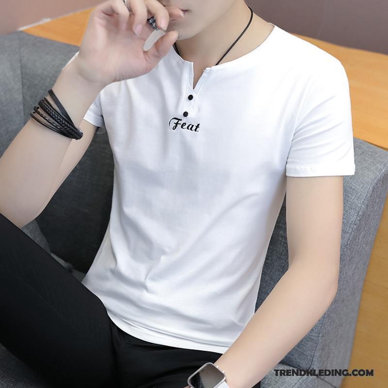 T-shirt Heren Korte Mouw Nieuw Zomer Bedrukken Slim Fit Trend Zwart