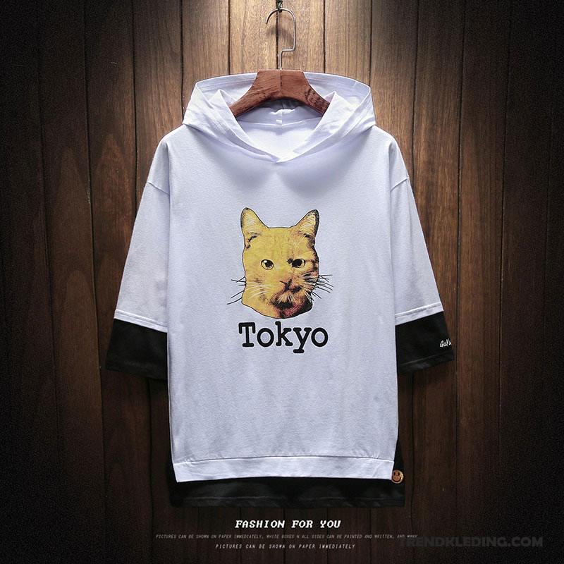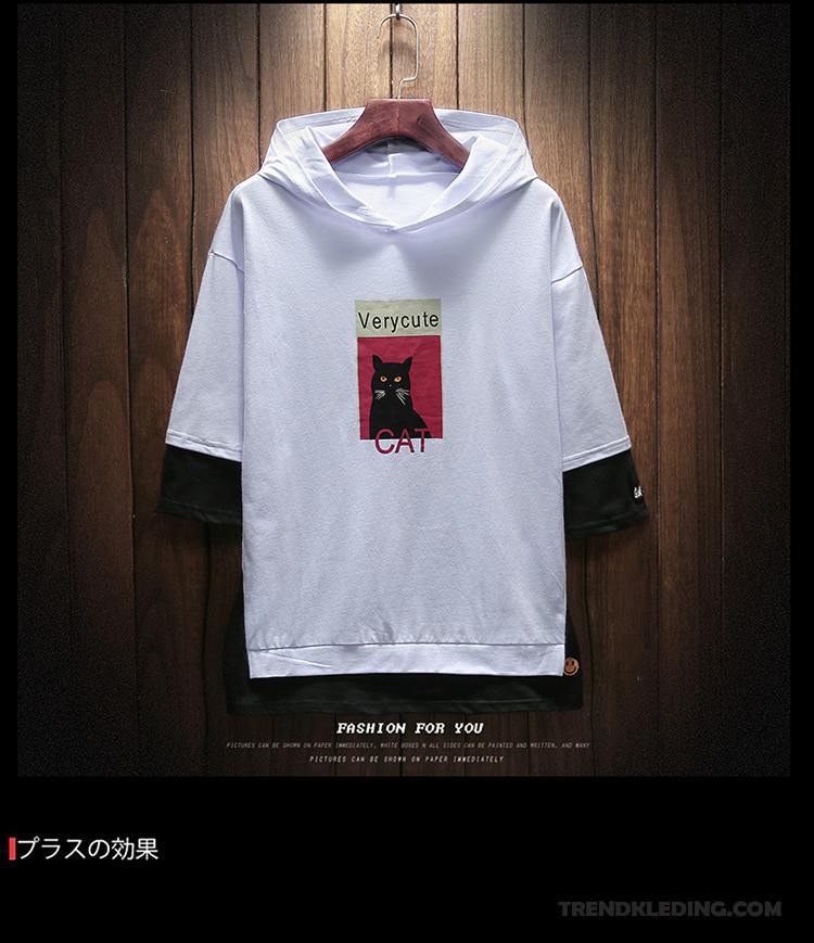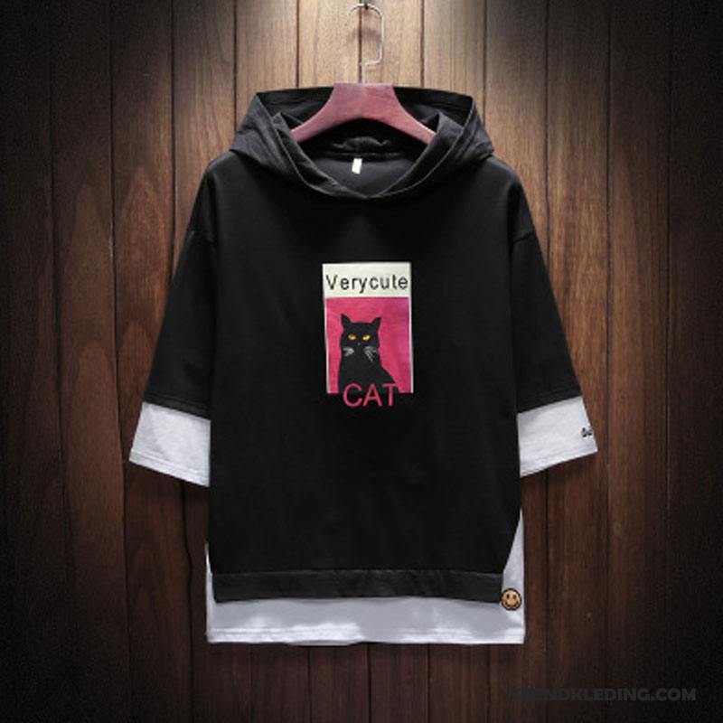 T-shirt Heren Mouw Mannelijk Korte Mouw Persoonlijk Hoodie Trend Zwart
