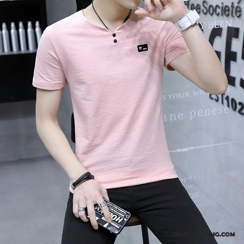 T-shirt Heren Nieuw Mannelijk Korte Mouw T-shirts 2018 Slim Fit Roze