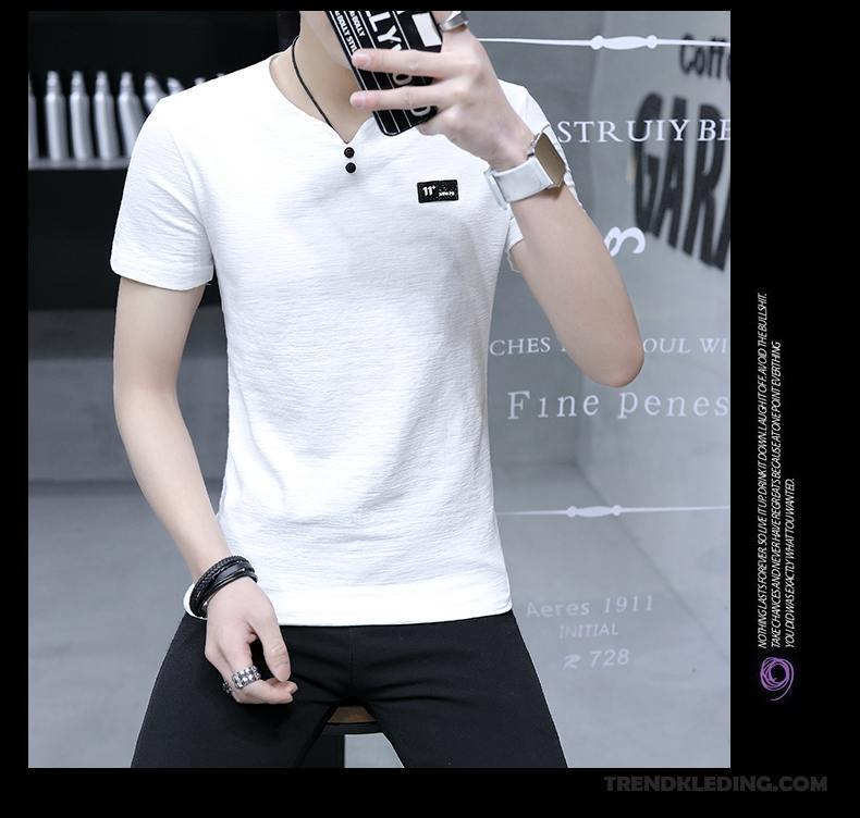 T-shirt Heren Halve Mouw Casual Korte Mouw Trend Jasje Mannelijk Wit
