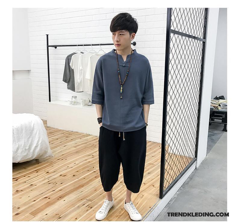 T-shirt Heren Nieuw Zomer T-shirts Chinese Stijl Jasje Trend Grijs