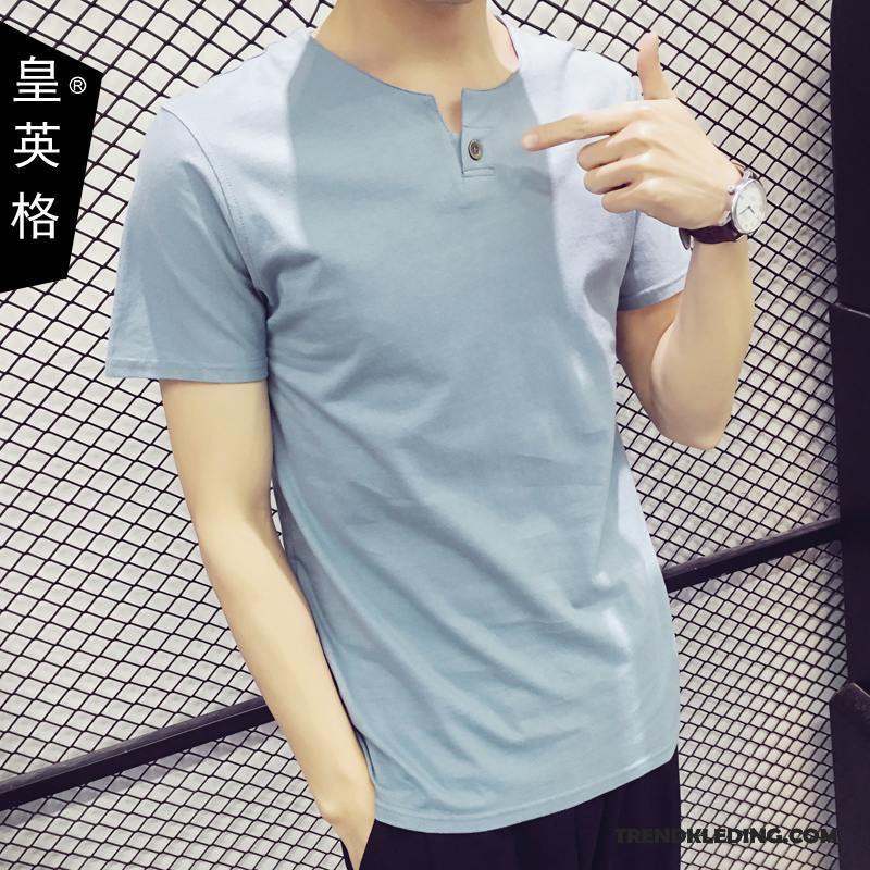 T-shirt Heren Onderhemd Jasje Halve Mouw Mannelijk Korte Mouw Trend Hemelsblauw