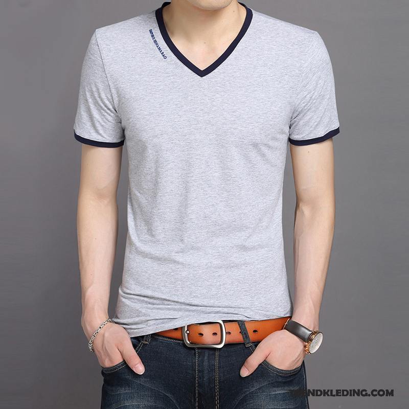 T-shirt Heren Zomer Slim Fit Nieuw Katoen 2018 Mannelijk Wit Grijs