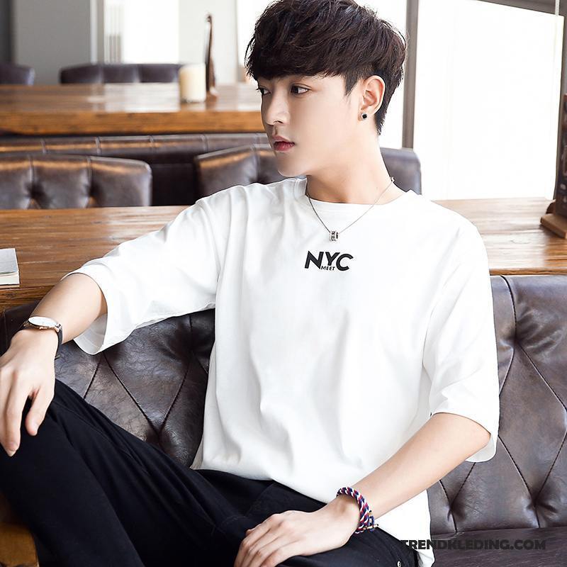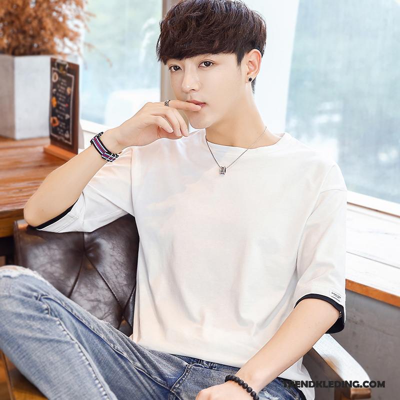 T-shirt Heren Halve Mouw Losse Zomer Trend Jasje Korte Mouw Wit