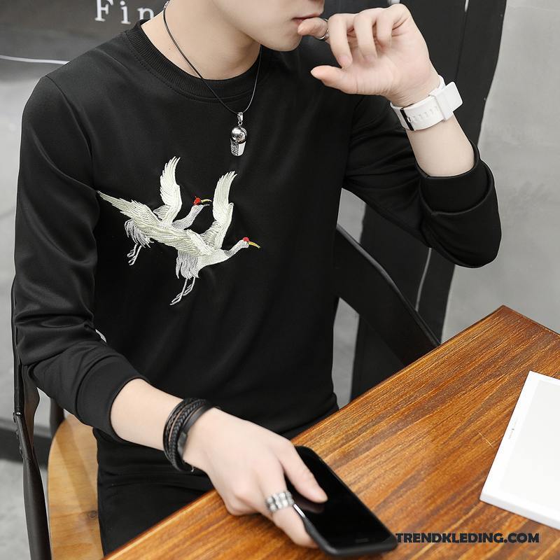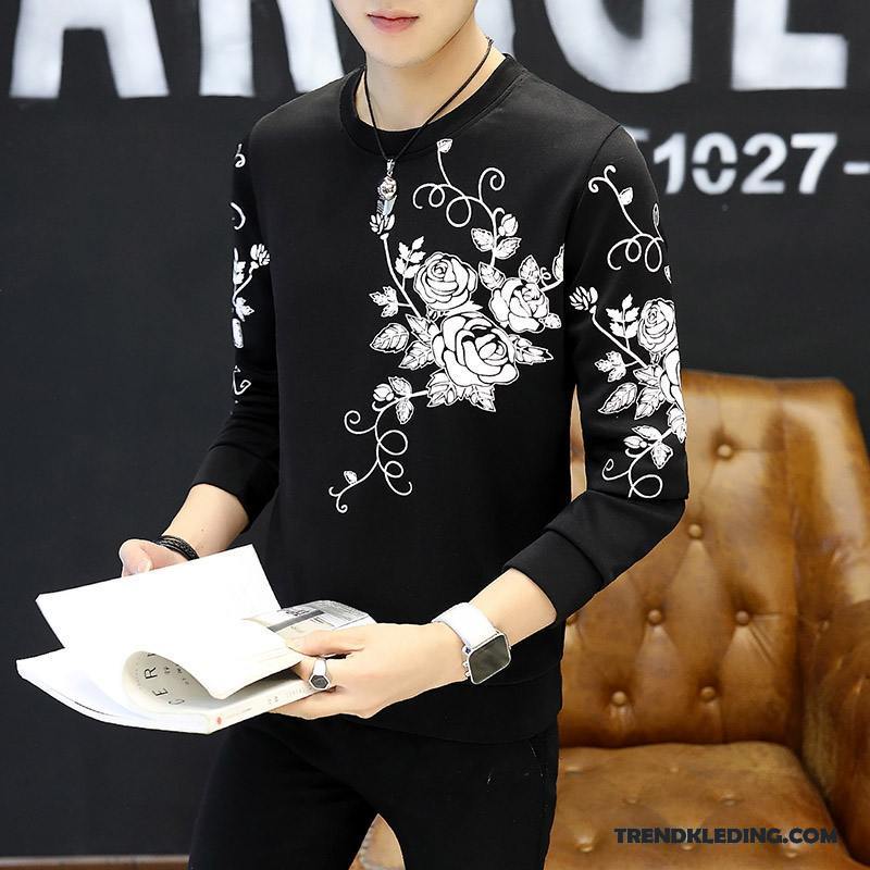 T-shirt Lange Mouw Heren Lange Mouwen Student Hoodie Voorjaar Onderhemd Ruimte Katoen Zwart