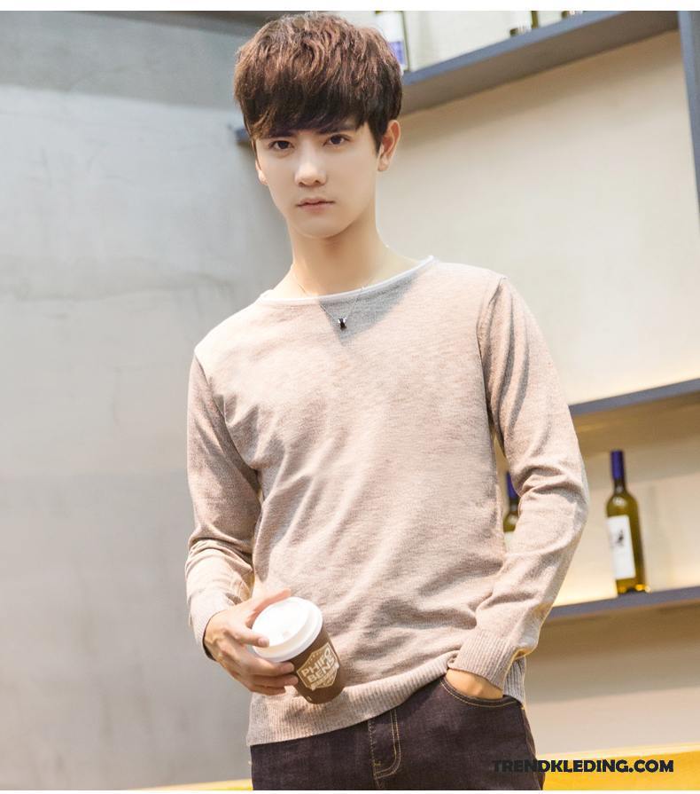 T-shirt Lange Mouw Heren Onderhemd Mooi Nieuw Student Mannelijk Trend Wit