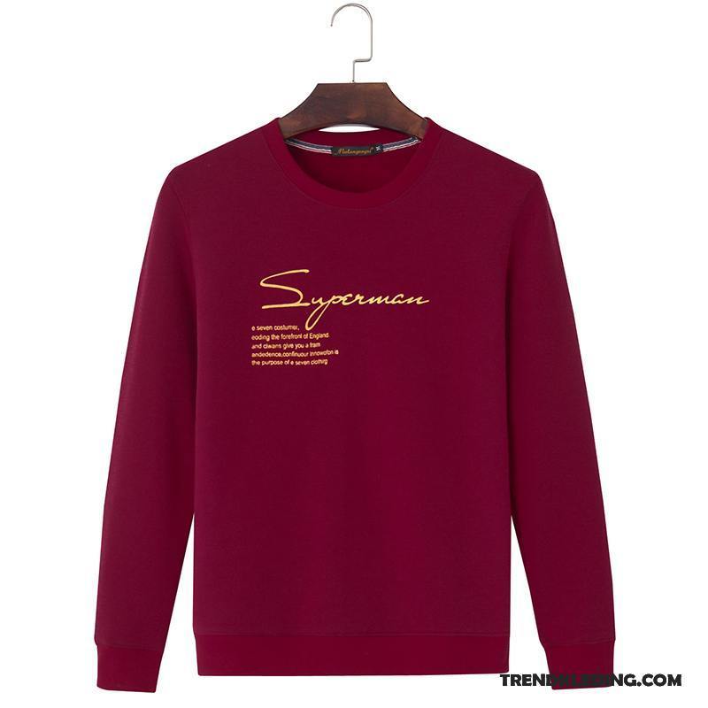 T-shirt Lange Mouw Heren 2018 Nieuw Hoodie Slim Fit Herfst Trend Rode Wijn