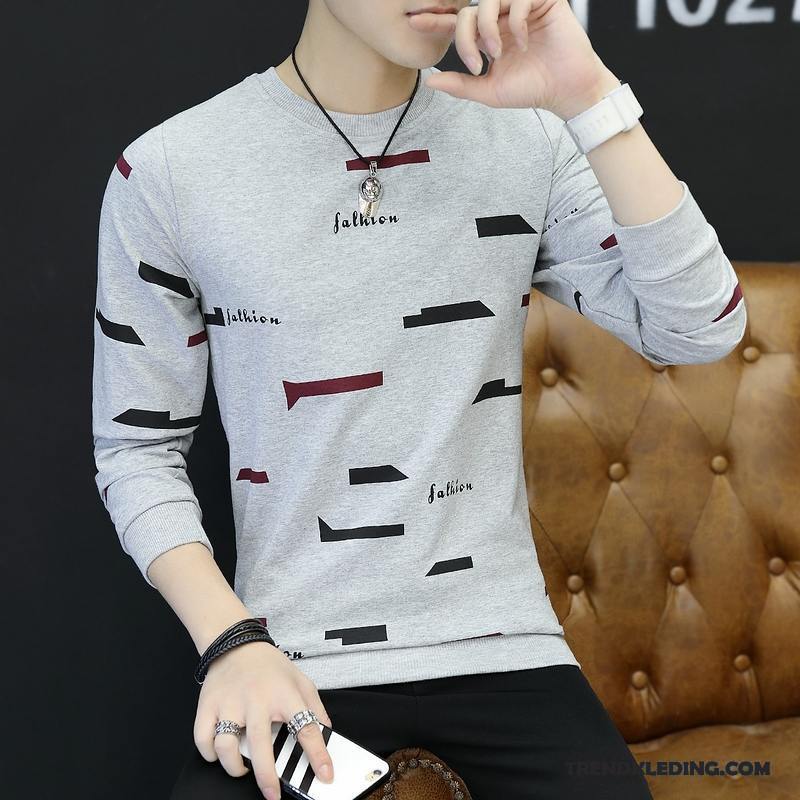 T-shirt Lange Mouw Heren 2018 Ronde Hals Herfst Hoodie Voorjaar Mini Grijs