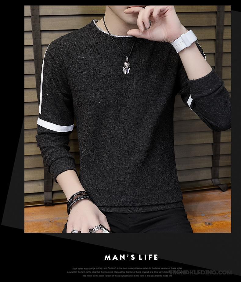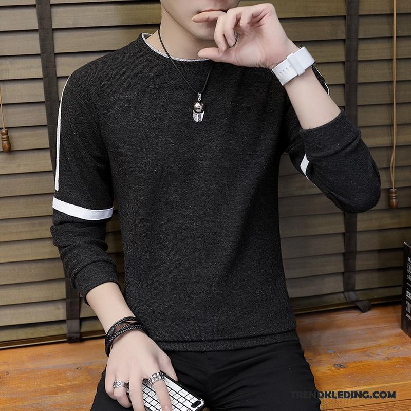 T-shirt Lange Mouw Heren Persoonlijk Nieuw Winter Jasje Ronde Hals Trend Zwart
