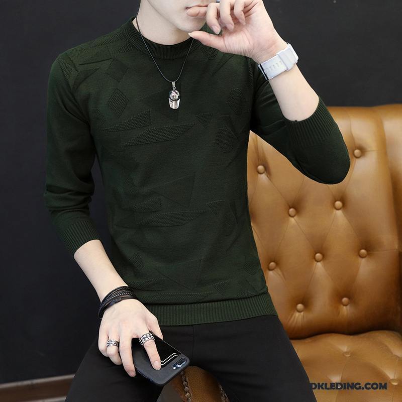 Trui Heren Voorjaar Student Breien Ronde Hals Trend Herfst Kaki