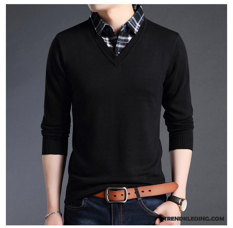 Trui Heren Slim Fit Mannelijk Jas Gebreid Hemd Herfst Ronde Hals Bruine